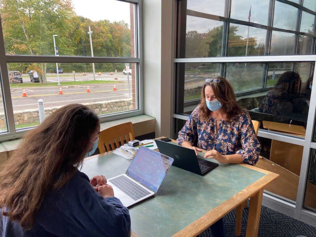 Many seniors took advantage of the free time the morning of the PSATs in order to work on their college essays. Teachers from the Writing Center were available and conferencing with students the entire time.